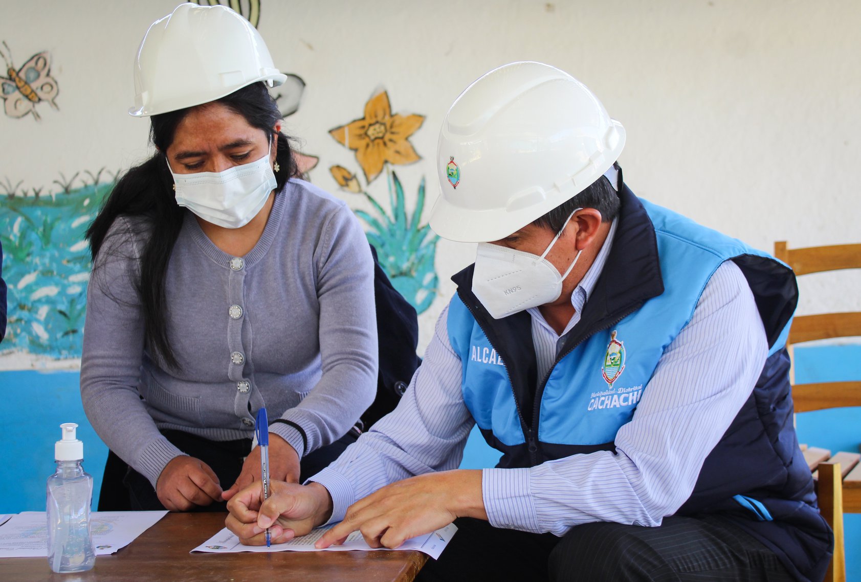 Municipalidad Distrital de Cachachi, entrega terreno para la ejecución de la obra denominada, " Mejoramiento del Servicio Educativo del Nivel Inicial de la I.E N° 043 de Cachachi. Obra que será ejecutada bajo el mecanismo de Obras por Impuestos. A través de la empresa privada (Pan American Silver). Quien a través de la empresa contrata ( GSC. Ingenieros Contratistas Generales S.A.C), ejecutará el expediente técnico y la ejecución de la obra. Para el gobierno municipal de Cachachi, es primordial mejorar la calidad educativa del distrito, es por ello que viene priorizando obras de infraestructura moderna para brindar espacios adecuados a los niños y niñas quienes se ven incentivados a mejorar sus aprendizajes.