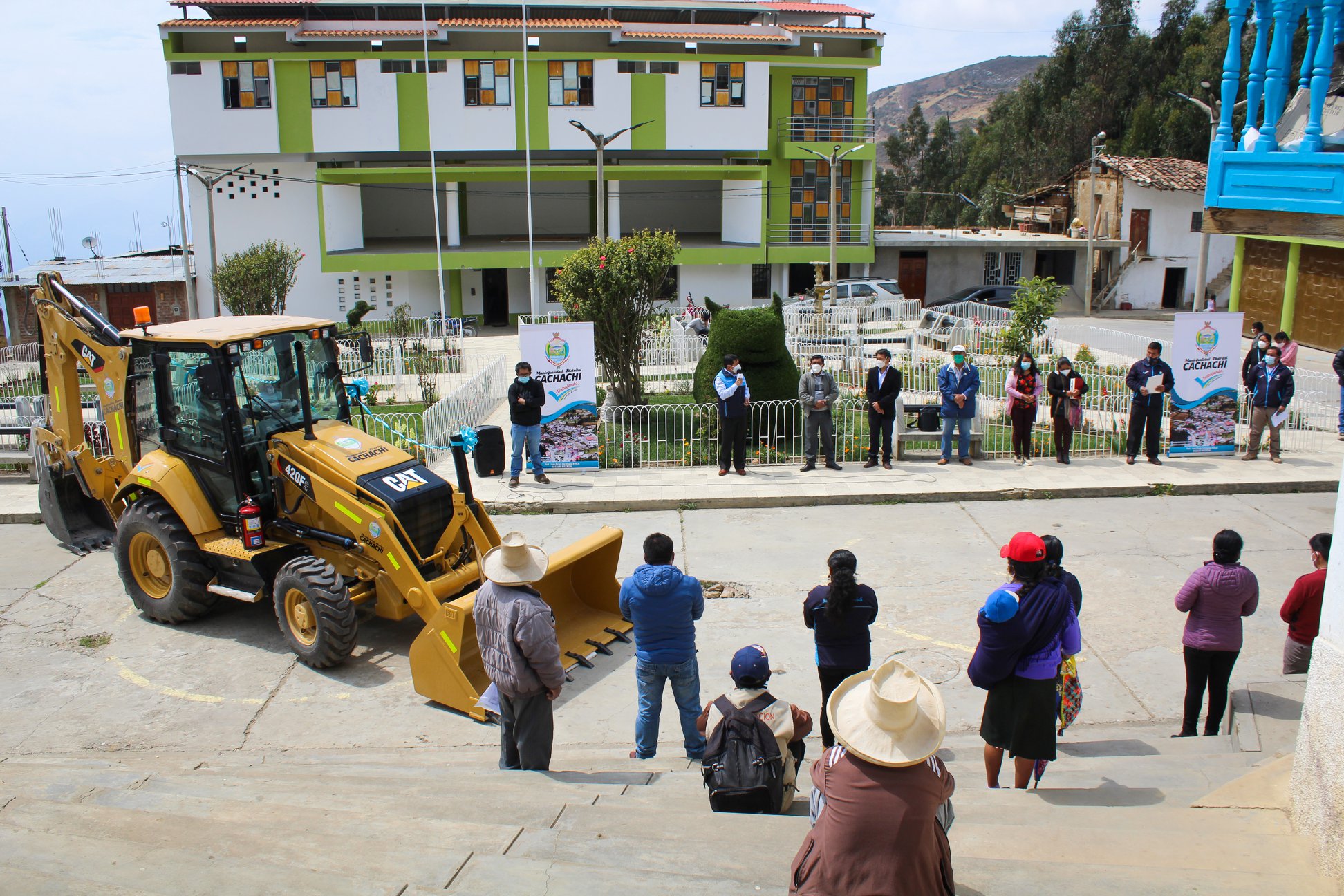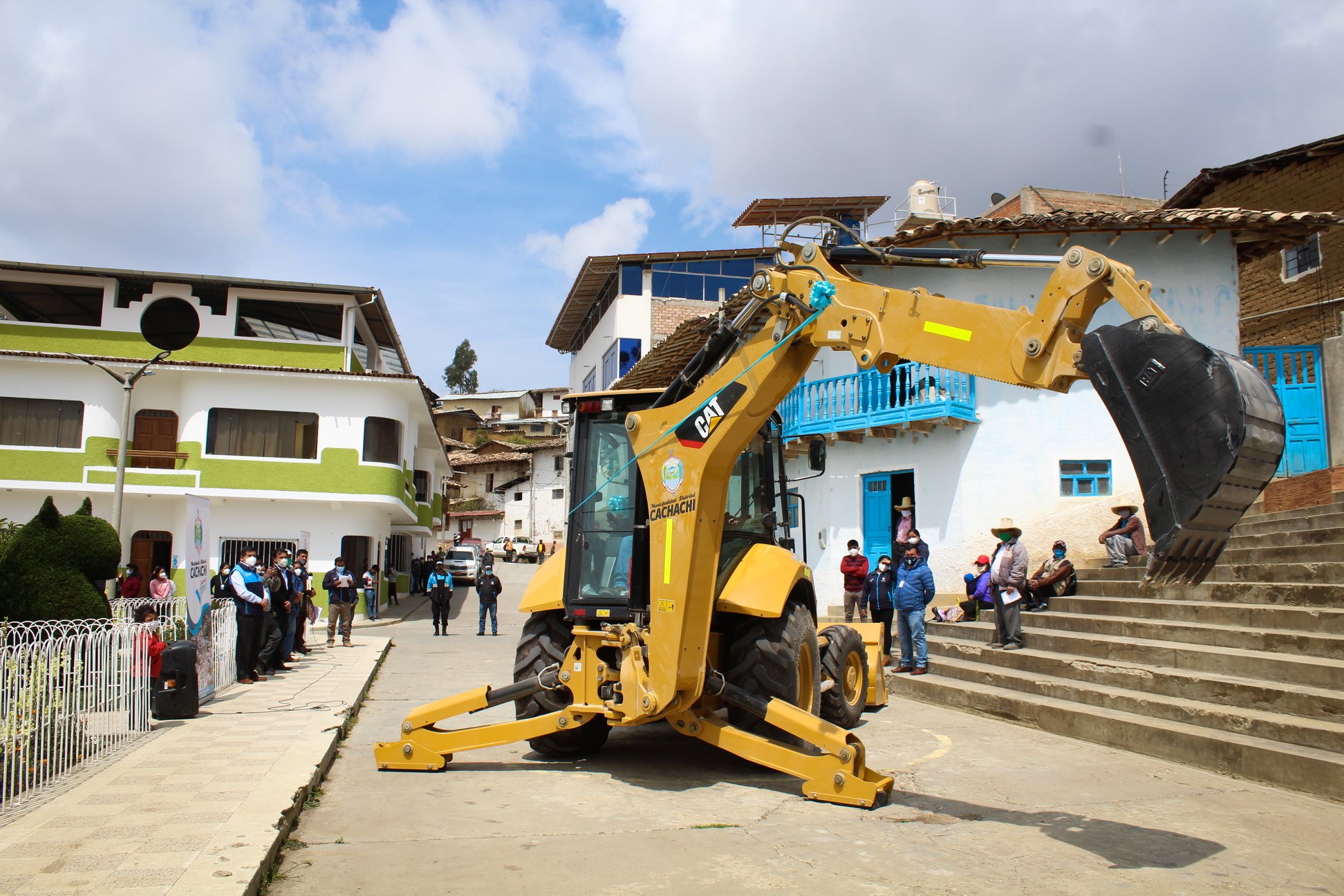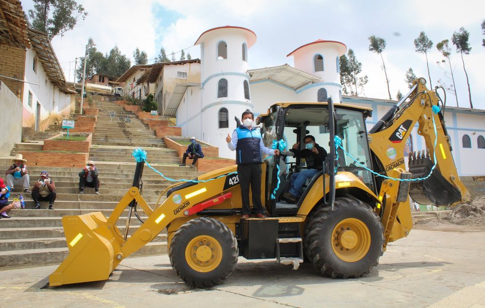 En ceremonia pública en la plaza principal del distrito de Cachachi, el alcalde Prof. Juan Efraín Cortegana Roncal, realizó la presentación oficial de la retroexcavadora de marca CAT, modelo 420 F2, de 94 HP, que adquirió el gobierno municipal, con la finalidad de mejorar trabajos de limpieza y descolmatación de ríos, aperturas de trochas carrozables, mantenimiento de vías de comunicación. Y en el tema agrícola la construcción de microreservorios. Maquinaria que se coloca a disposición de la población de la jurisdicción.