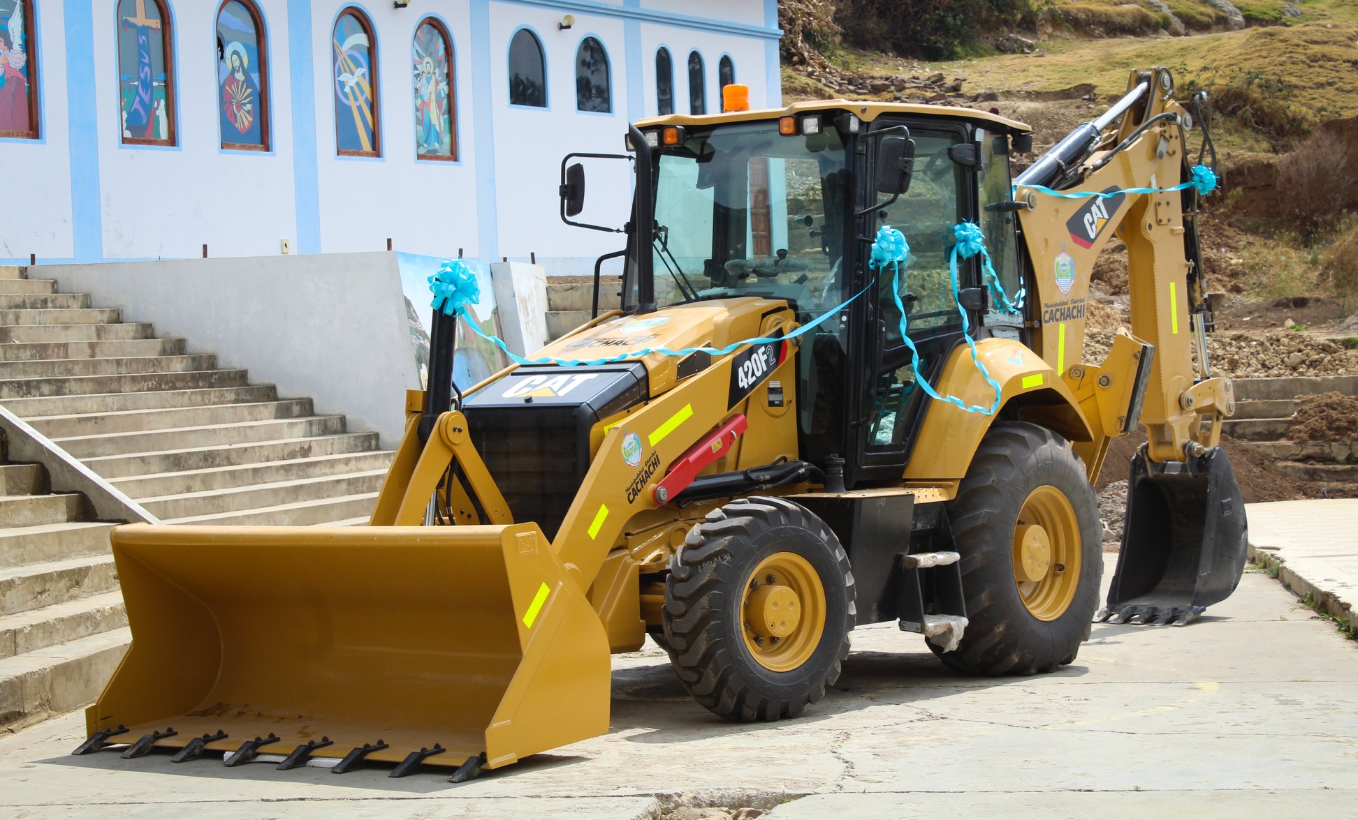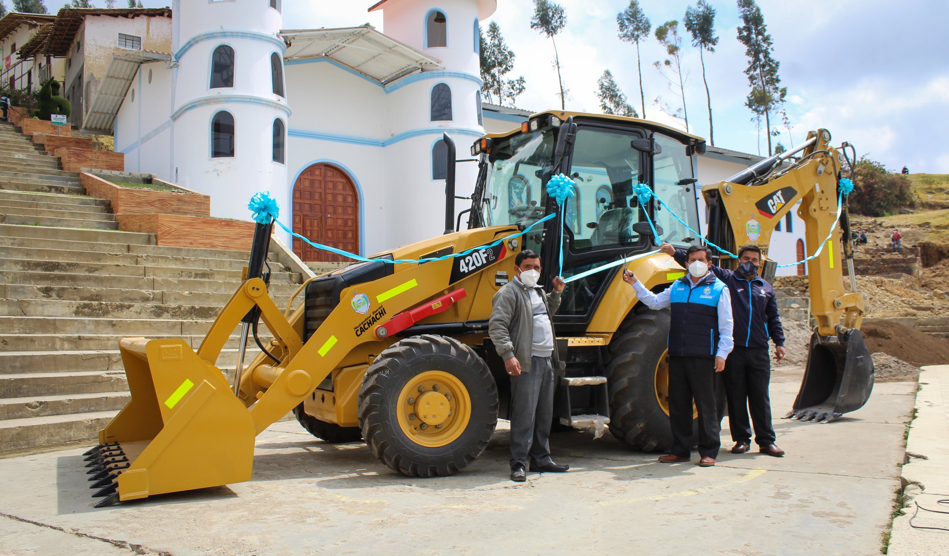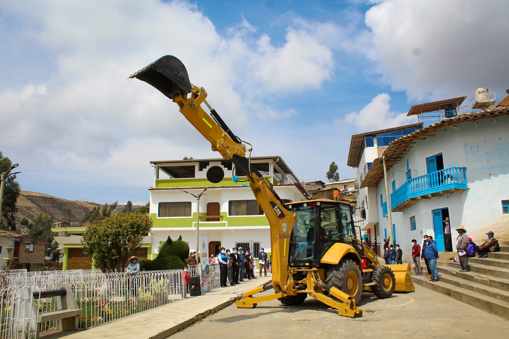 En ceremonia pública en la plaza principal del distrito de Cachachi, el alcalde Prof. Juan Efraín Cortegana Roncal, realizó la presentación oficial de la retroexcavadora de marca CAT, modelo 420 F2, de 94 HP, que adquirió el gobierno municipal, con la finalidad de mejorar trabajos de limpieza y descolmatación de ríos, aperturas de trochas carrozables, mantenimiento de vías de comunicación. Y en el tema agrícola la construcción de microreservorios. Maquinaria que se coloca a disposición de la población de la jurisdicción.