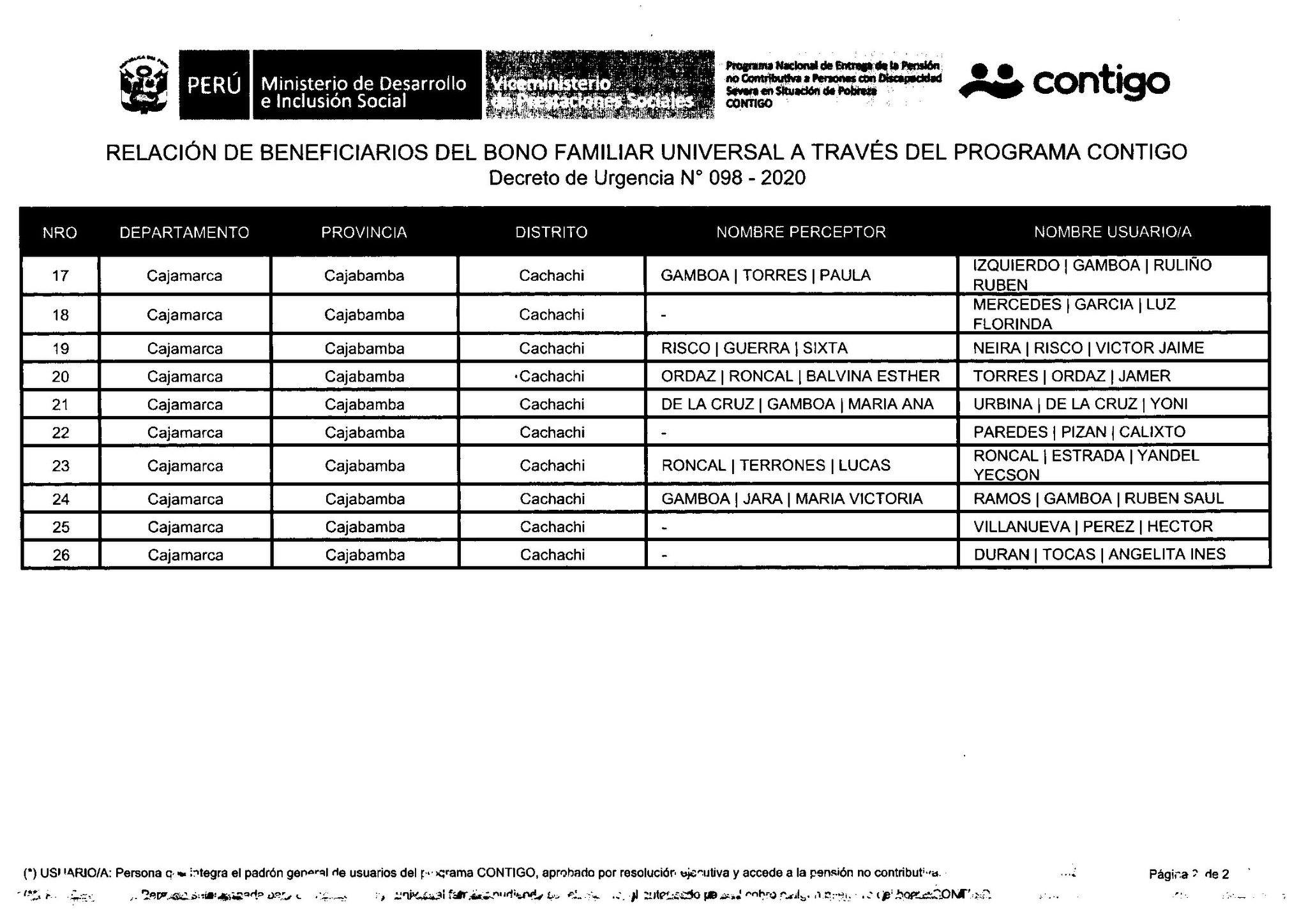 #Municipalidaddistritalcachachitext A LOS BENEFICIARIOS DE LAS SIGUIENTE LISTAS, PUEDEN COBRAR EL BONO CON SU TARJETA EN EL BANCO DE LA NACION