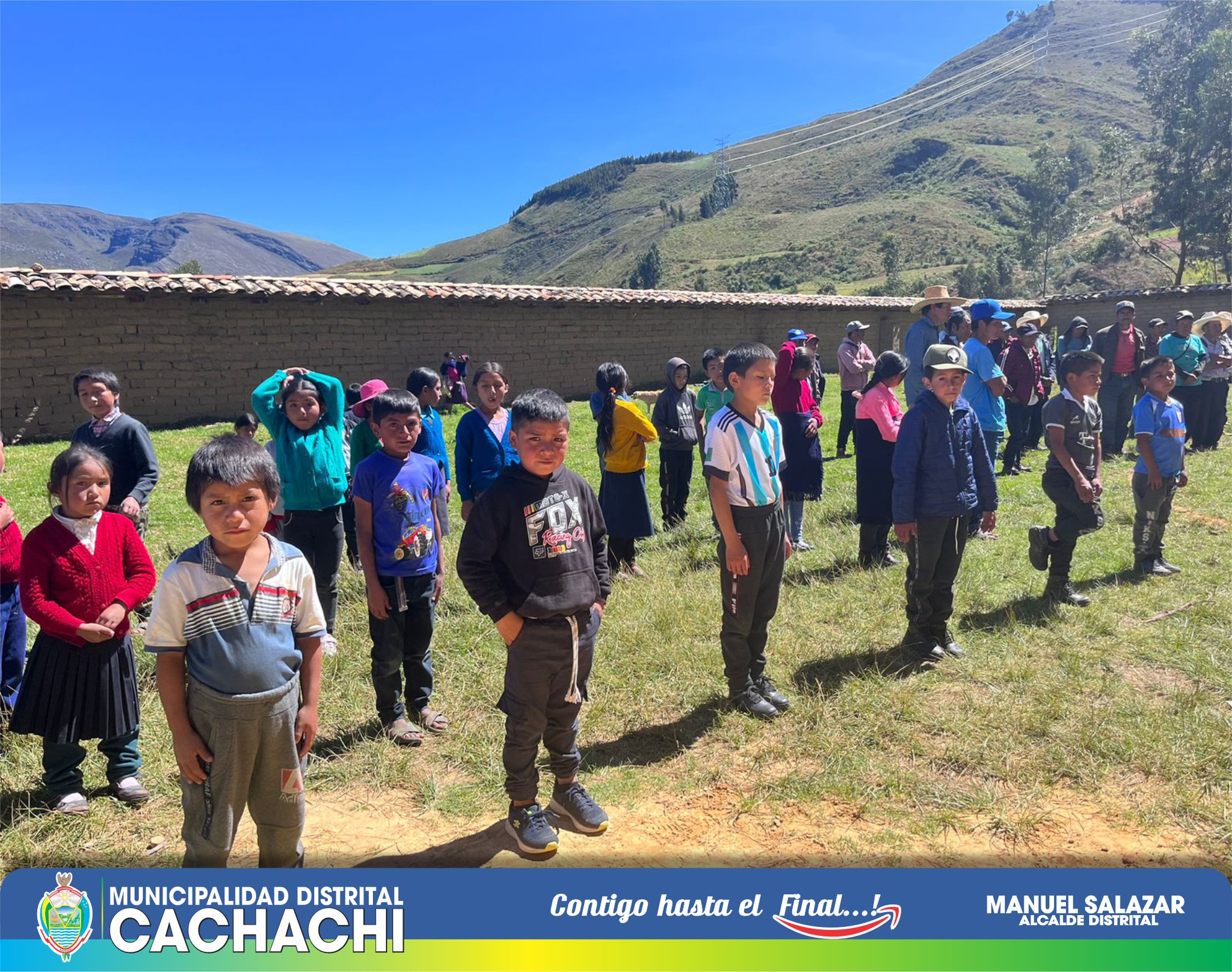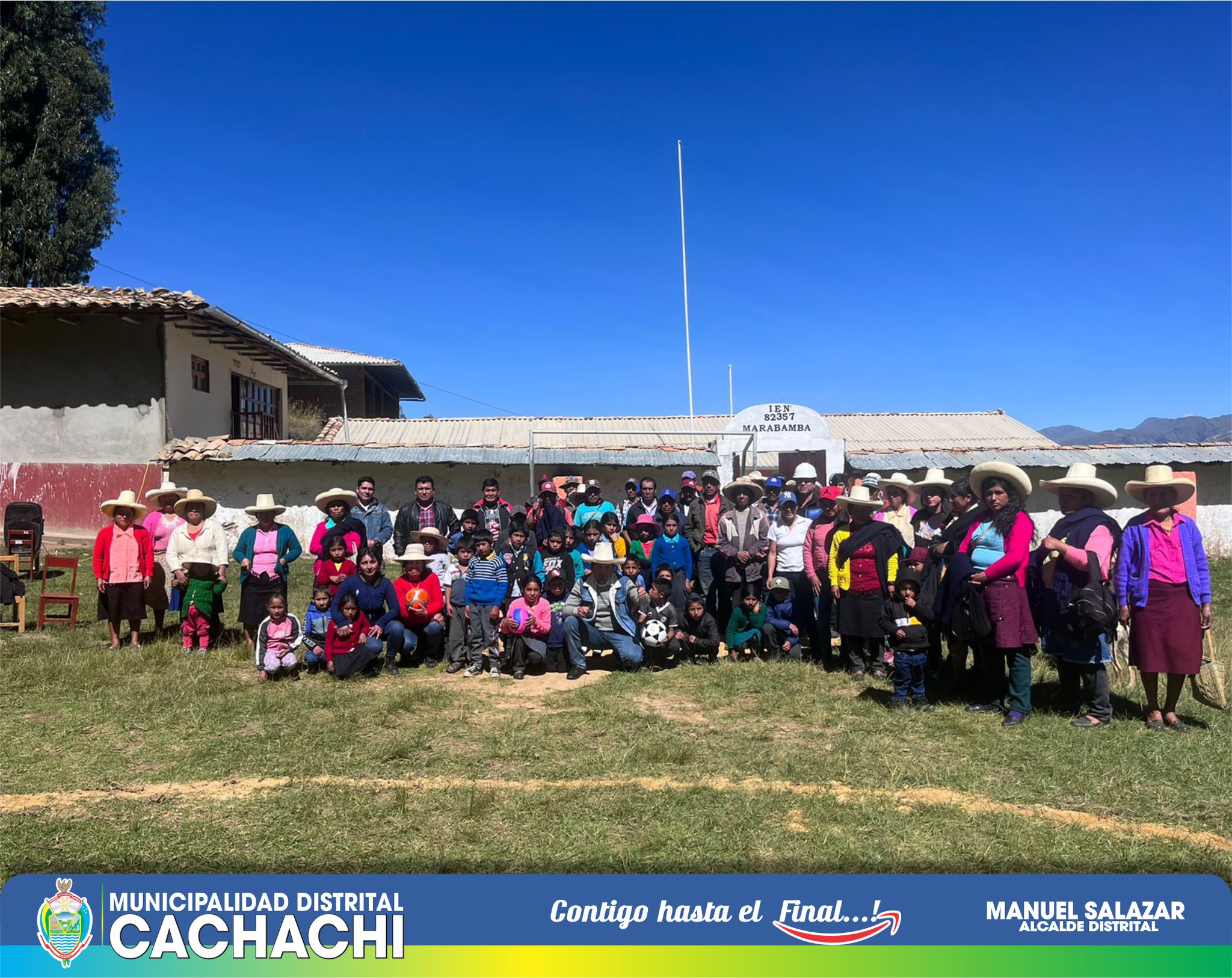 Esta mañana se realizó la colocación de la primera piedra para dar inicio al proyecto de construcción de aulas equipadas y cerco perimétrico en la Institución Educativa Nª 82357 de la localidad de Marabamba. El alcalde distrital, Manuel Salazar, que hizo llegar balones de fútbol, futsal y de vóley para los niños, solicitó al equipo técnico que culmine con éxito este anhelado proyecto por todos los beneficiarios. “Hay muchas necesidades en educación, pero vamos por buen camino para ir mejorando las condiciones de nuestros alumnos”, añadió. La directora de la institución, Silvia Castañeda, agradeció la voluntad política de priorizar este proyecto. Mientras que el teniente Joel Paredes, refirió que los pobladores pondrán su granito de arena con el trabajo que se les pueda brindar. Los trabajos que se van a realizar son: construcción de un ambiente, 01 aula de innovación pedagógica, construcción de cerco perimétrico, implementación con mobiliario (laptops, mesas, sillas, escritorio, estantes, televisor y proyector multimedia). El plazo de ejecución es de 90 días calendario por Administración Directa, con un monto de inversión que supera los 500 mil soles.