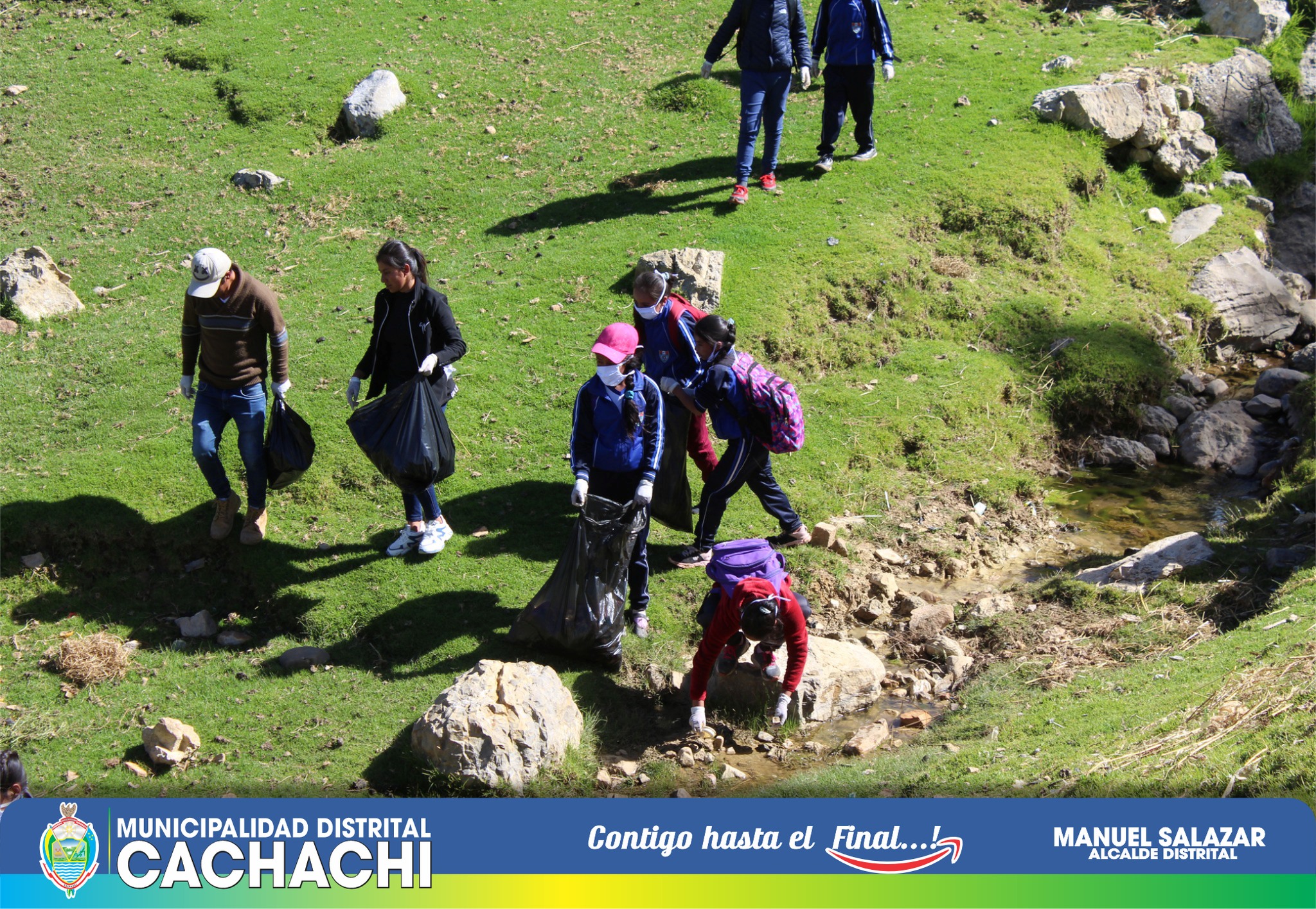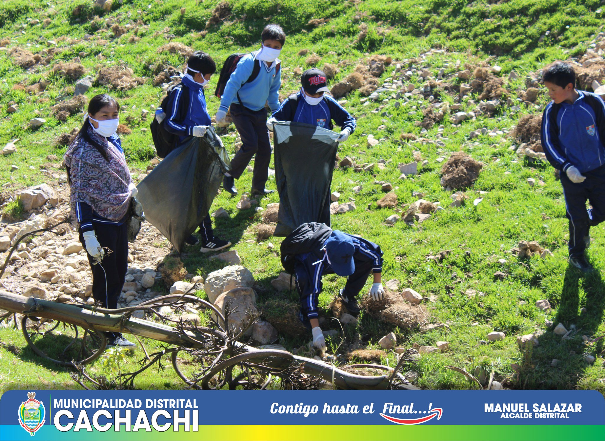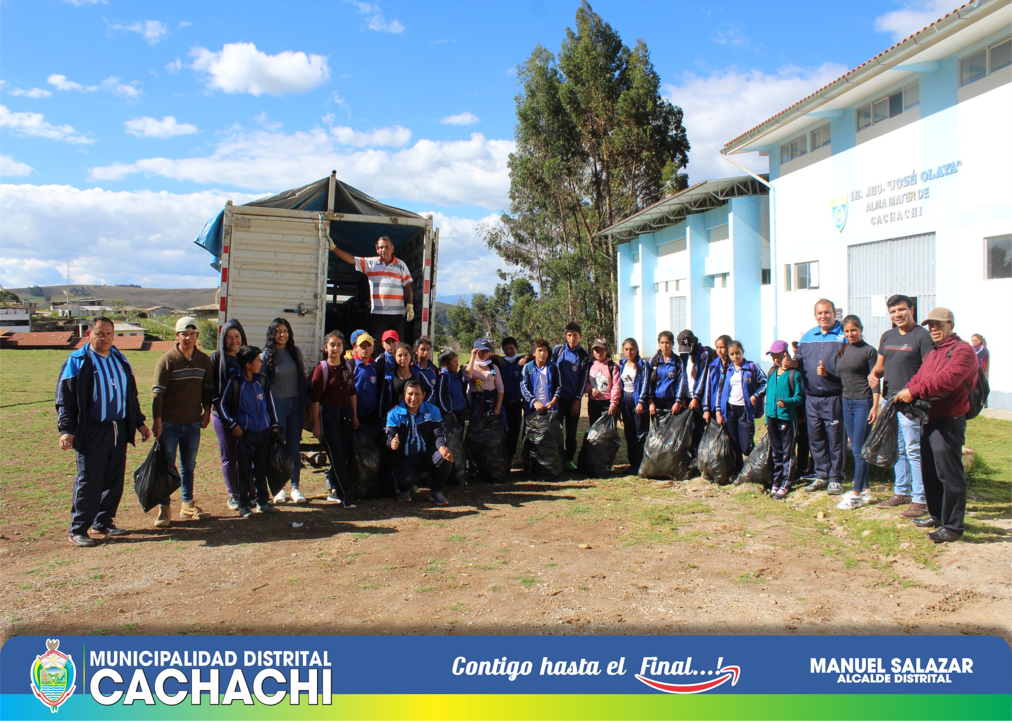 La Municipalidad Distrital de Cachachi realizó una jornada de limpieza (recojo de residuos sólidos) con estudiantes de la Institución Educativa José Olaya de Cachachi en diferentes puntos críticos de nuestra ciudad (cementerio, mercado, el mirador, vivero, entre otros). Esta jornada de limpieza tuvo como objetivo reducir el impacto negativo de la basura en Cachachi y sus alrededores, evitando de esta manera, la proliferación de la fauna nociva, la acumulación de distintos tipos de basura y desechos. Además, se busca la toma de conciencia de los pobladores de Cachachi sobre el cuidado del medio ambiente y la importancia de conservar los espacios naturales; evitando el arrojo de basura en las calles, ríos o cualquier tipo de lugar público.