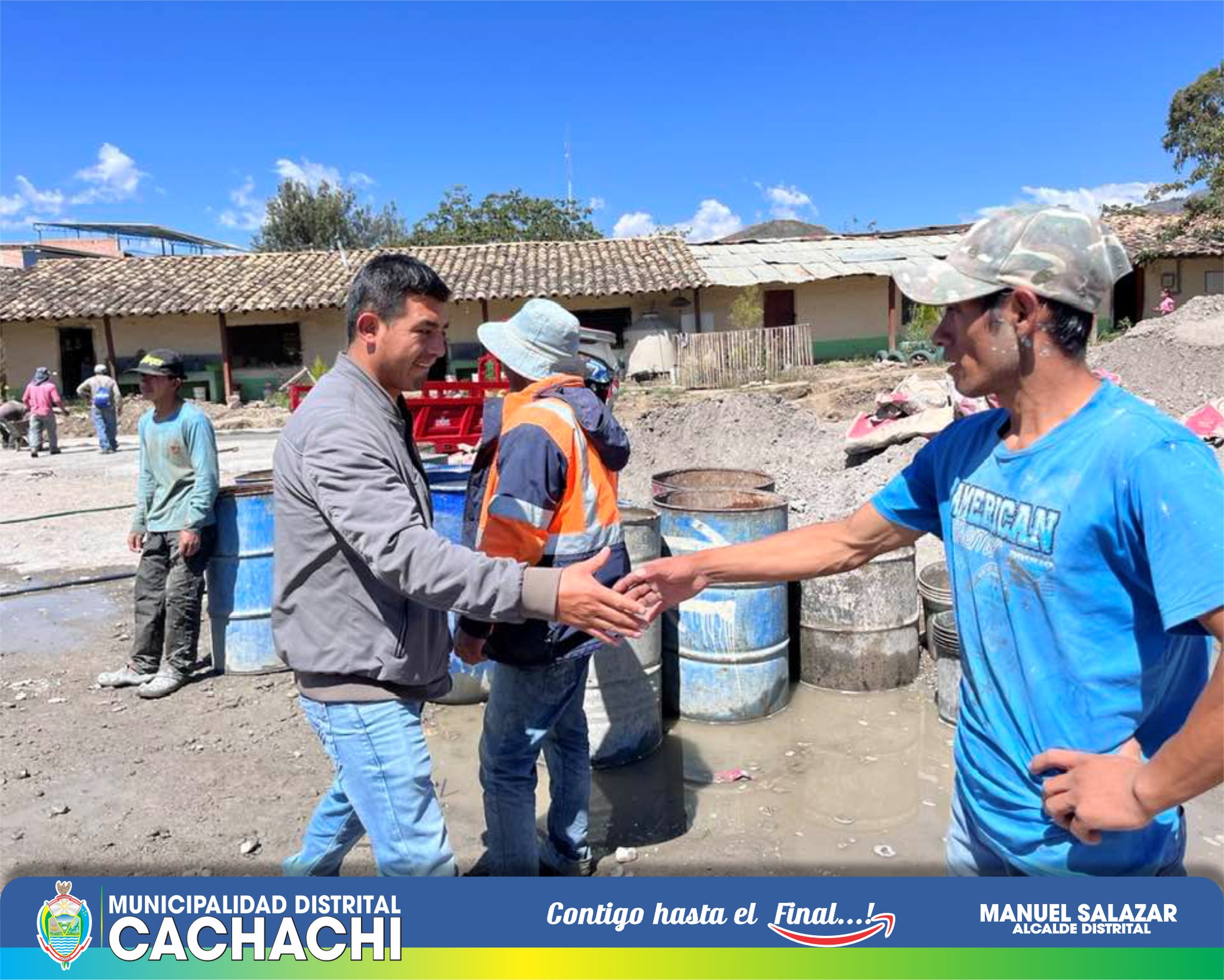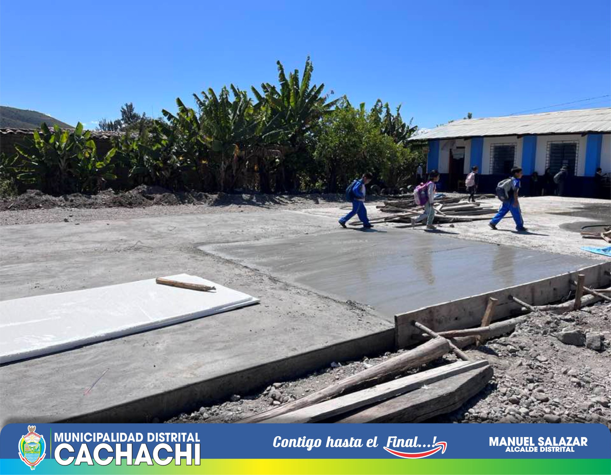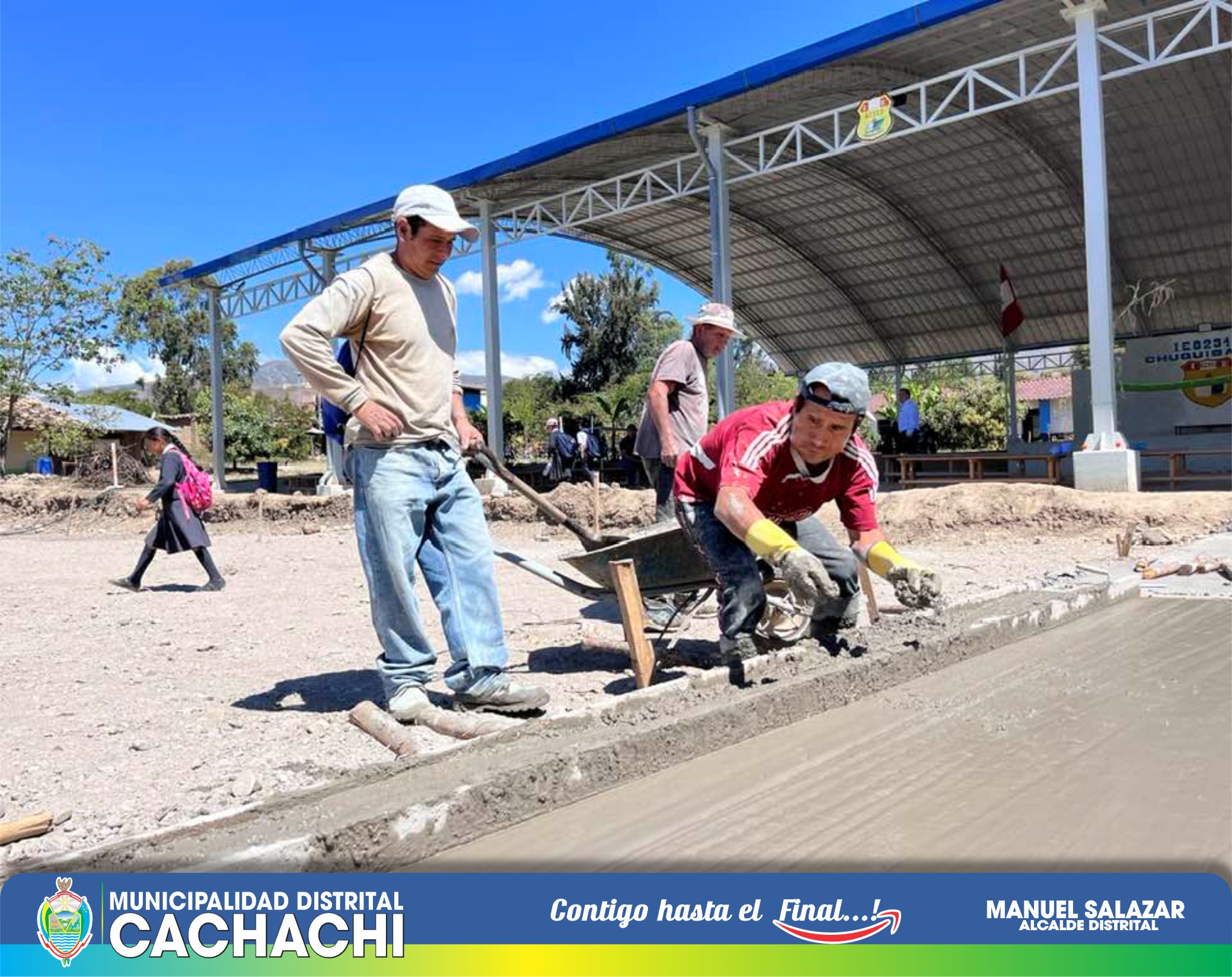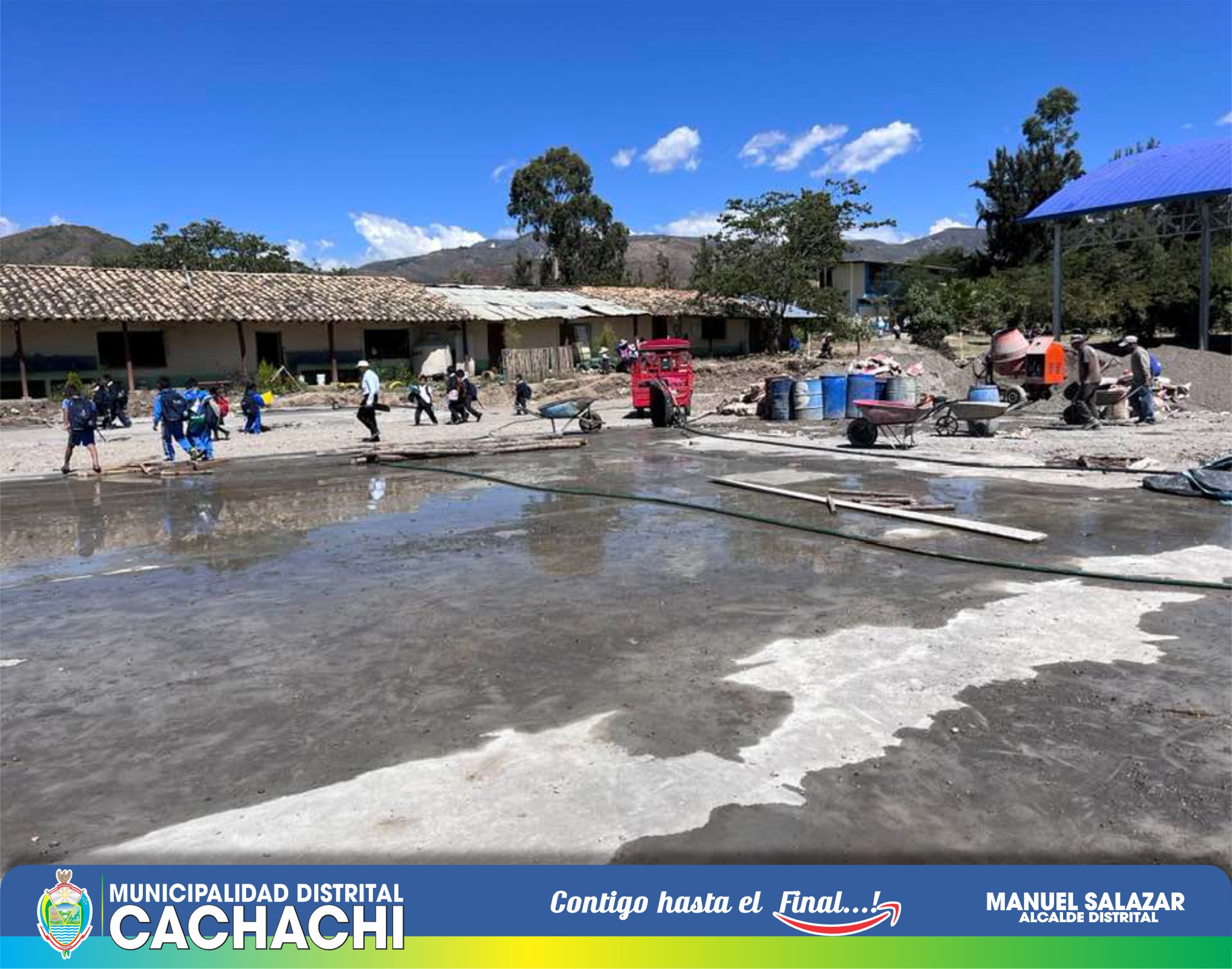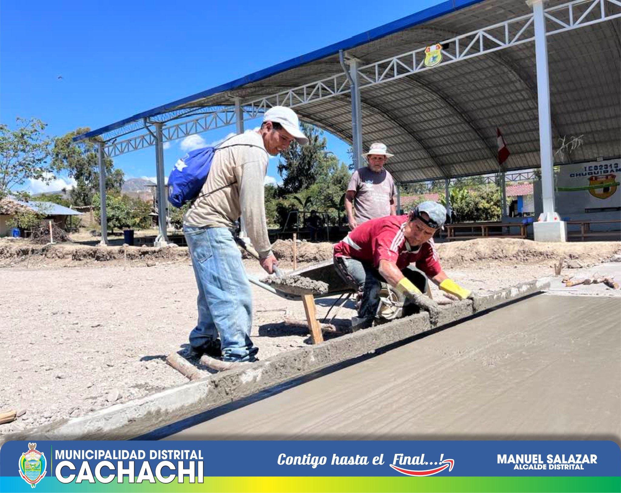 La Municipalidad Distrital de Cachachi en coordinación con la Asociación de Padres de Familia (APAFA) de la Institución Educativa Nª 82313 de Chuquibamba, vienen realizando la construcción de lozas deportivas, para actividades de recreación de la comunidad estudiantil. La Municipalidad Distrital de Cachachi realizó la nivelación y compactación de la institución, colocación de 12 cm de capa compactado, y estará brindando cemento para una loza deportiva, agregados para las dos lozas y mano de obra calificada para una loza. Mientras que la APAFA está apoyando con cemento, maestro de obra y mano de obra no calificada para una loza. Dato Esta Institución Educativa alberga a más de 400 estudiantes.
