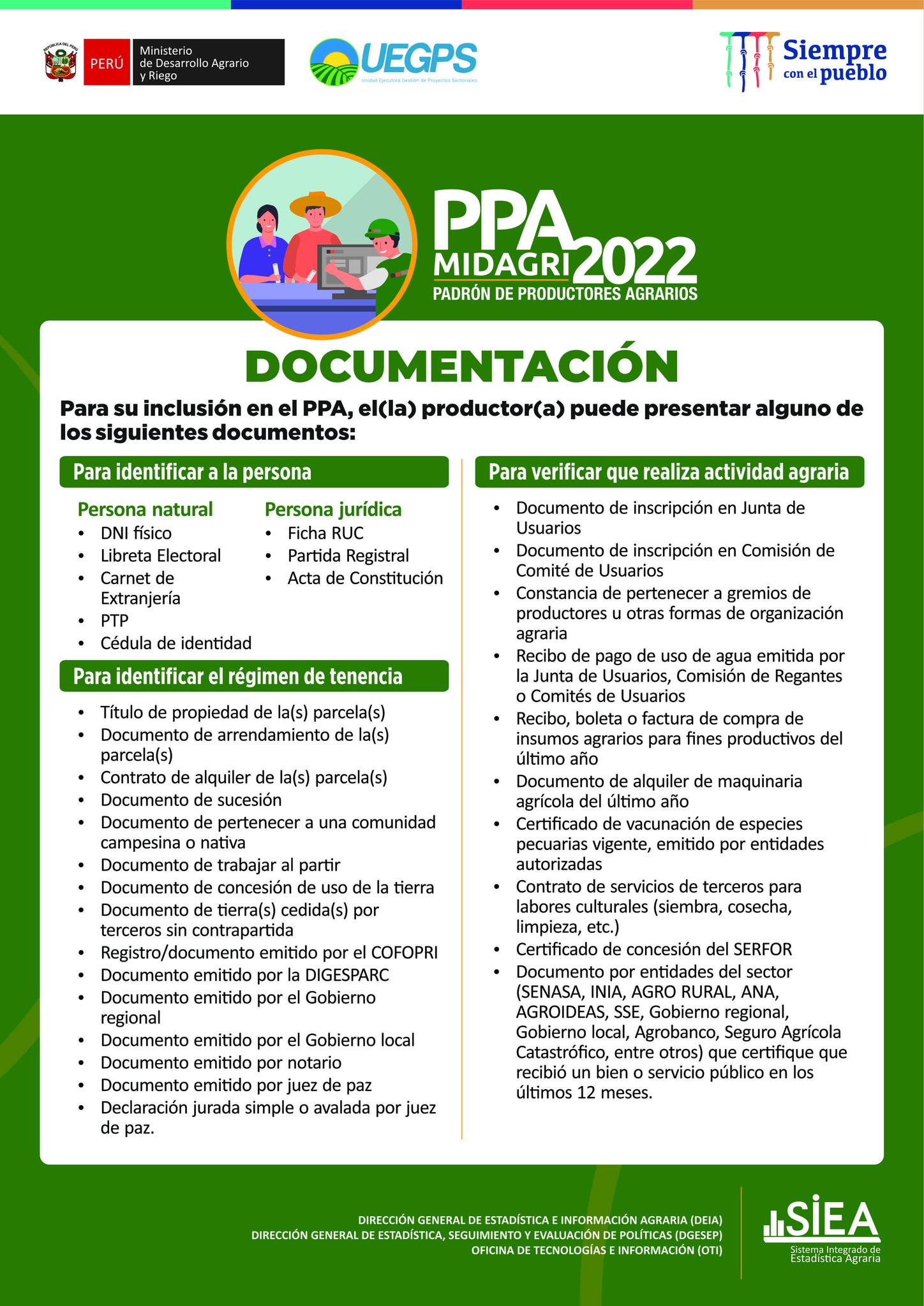 IMPORTANTE‼️ Al momento de acercarse, debe llevar consigo los tres requisitos INDISPENSABLES (DNI, DOCUMENTOS QUE ACREDITEN LA TENENCIA DEL PREDIO Y UN DOCUMENTO PARA IDENTIFICAR QUE REALIZA ACTIVIDAD AGRARIA). 📌El empadronamiento se esta realizando en las instalaciones del Ministerio de Agricultura de Cajabamba (Parubamba) 📝 de lunes a viernes de 8:00am a- 1:00pm y de 3:00pm - 6:00pm 📌Consultas con Edith Salinas (cel. 955681072)