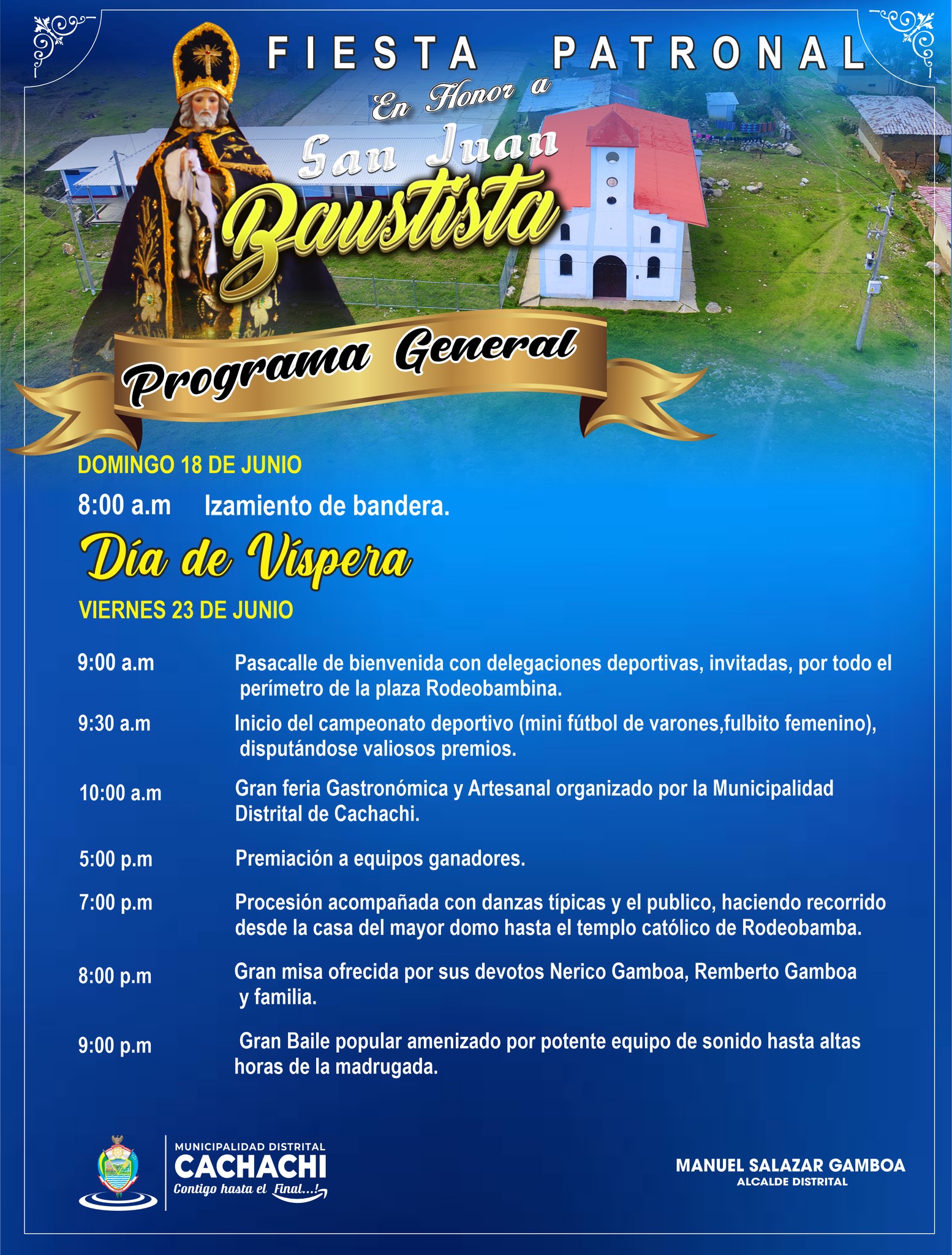 ESTE SÁBADO 24 DE JUNIO CELEBREMOS JUNTOS LA FIESTA PATRONAL EN HONOR A SAN JUAN BAUTISTA DEL CASERÍO DE RODEOBAMBA. Revisa el programa completo aquí 👇🏻👇🏻