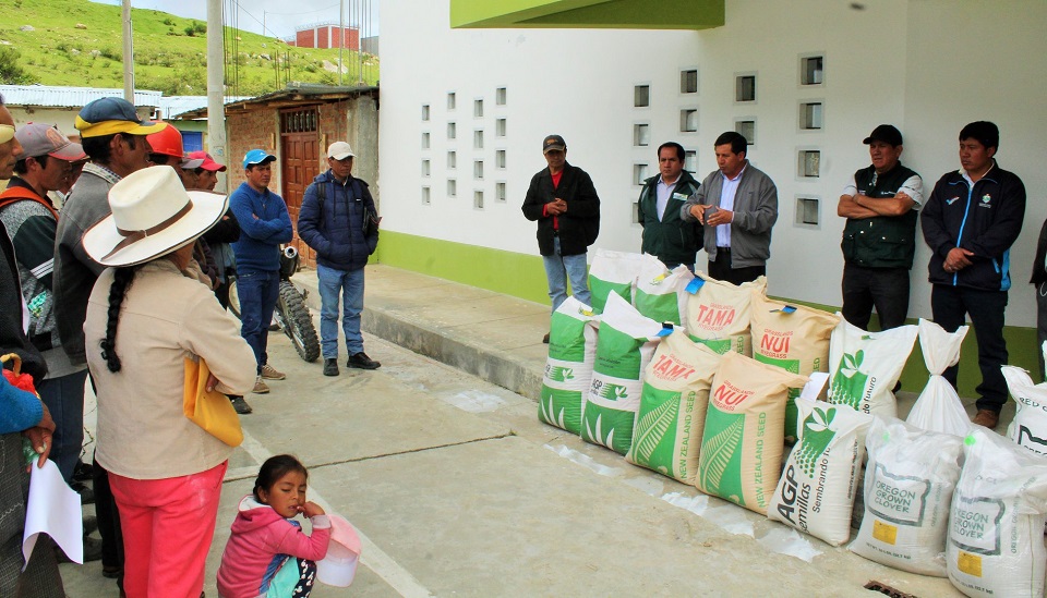 MUNICIPALIDAD DISTRITAL DE CACHACHI GESTIONÓ SEMILLAS FORRAJERAS DEL PROGRAMA AGRO RURAL PARA MEJORAR LA ACTIVIDAD PECUARIA DEL DISTRITO. Comprometidos con el desarrollo de la agricultura, la Municipalidad Distrital Cachachi gestionó semillas de Ray-grass, Trébol rojo, blanco y Dactylis del programa AGRO RURAL del Ministerio de Agricultura y Riego, para el cultivo de pastos mejorados buscando incrementar producción ganadera. En esta ocasión se instalará 78 hectáreas de pastos mejorados, beneficiando a familias de los caseríos Chochoguera, El Monton, Marabamba Alto, Huayllabamba, Caruacushma, Rodeobamba, Chimchimpata, Redondo y Santa Cruz, haciendo un total de 1500 hogares, quienes contaran con asistencia técnica permanente por parte del gobierno local, hasta lograr el objetivo trazado.