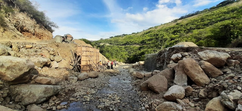 Con éxito Municipalidad de Cachachi, avanza la construcción del puente sobre la quebrada Máximas Flores, obra que mejora la interconección de este y otros caseríos aledaños, así como el intercambio comercial, incrementado la economía de las familias de esta zonas