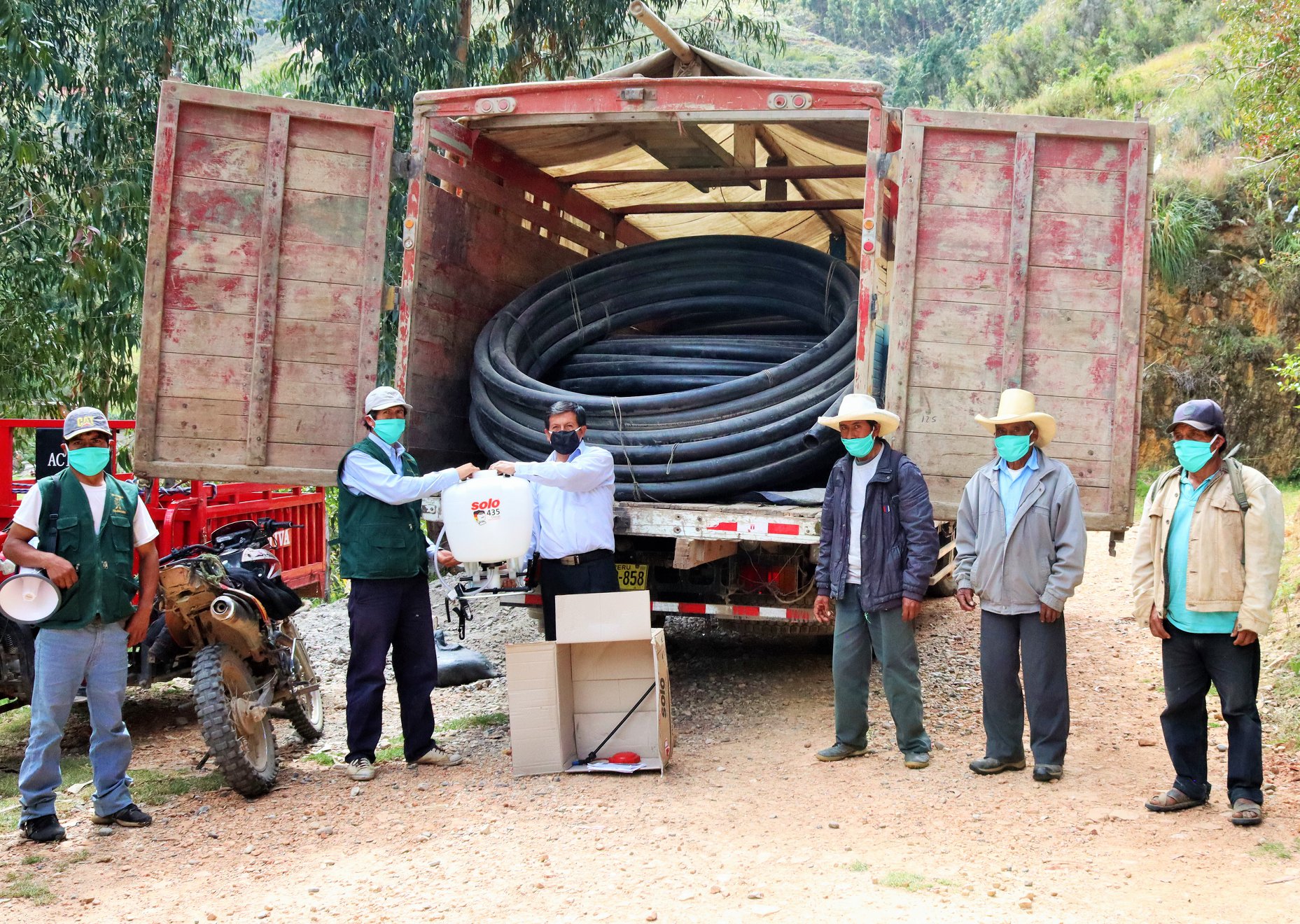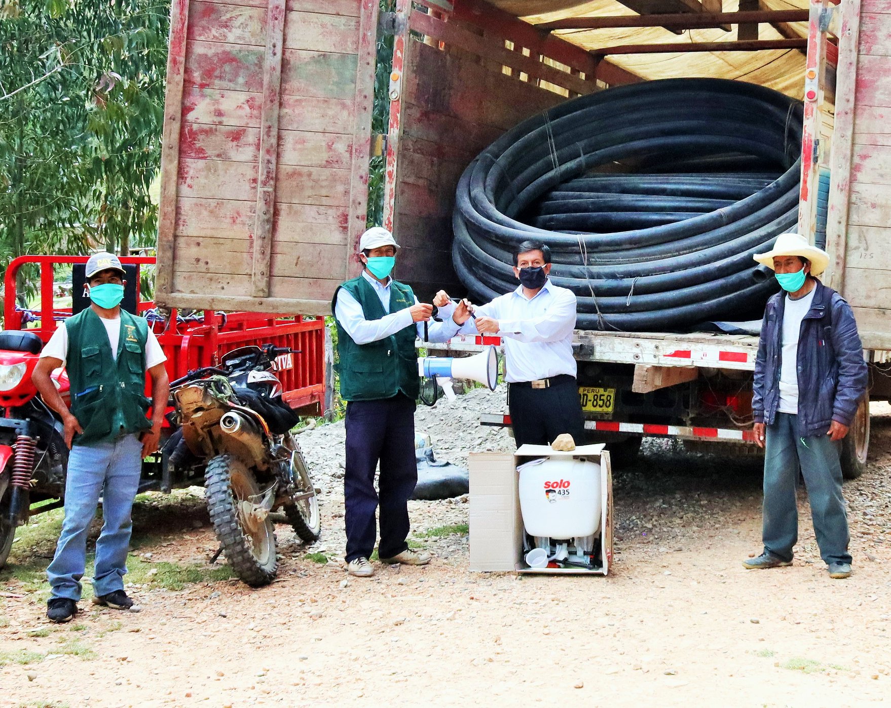 📢📢Cumpliendo con nuestra palabra, en trabajar para mejorar la agricultura en el distrito, la Municipalidad de Cachachi que dirige el Prof. Juan EfraÃn Cortegana Roncal, entregó 5 rollos de manguera de polietileno de 3 pulgadas, para optimizar el regadÃo de varias hectáreas de diferentes cultivos en el caserÃo Marabamba.🥔🥔🌽🌽 También se benefició a los moradores del sector, con un equipo de fumigación y un megáfono, para fortalecer el trabajo de vigilancia de la ronda campesina; que en estos tiempos cumplen un rol fundamental en apoyar en el cumplimiento de las medidas sanitarias, para evitar la propagación del Covid -19.📢📢🚨🚨