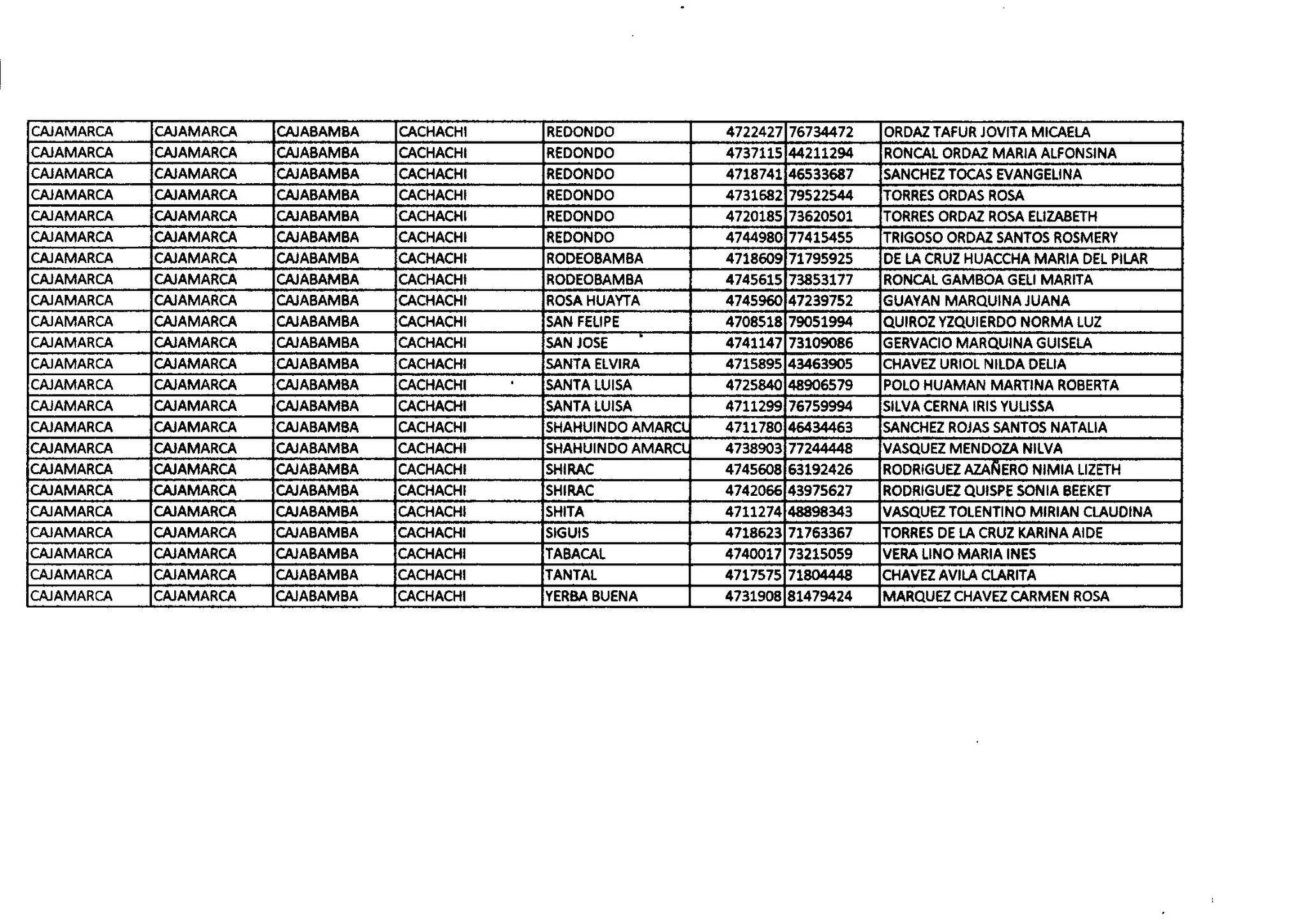 #Municipalidaddistritalcachachitext Se comunica a las madres de las siguientes listas, que deben empadronarse para que sus hijos menores de 2 años , puedan acceder al DIT del programa Juntos. Mayor información comunicarse con la señora ROSA NORIEGA al celular 969109004.