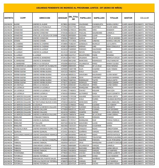 #Municipalidaddistritalcachachitext SE COMUNICA A TODAS LAS USUARIAS PENDIENTES DE INGRESO AL PROGRAMA JUNTOS - DIT. MAYOR INFORMACION CON EL SEÑOR ELMER ABANTO MACHUCA CEL. 961066972 945795645