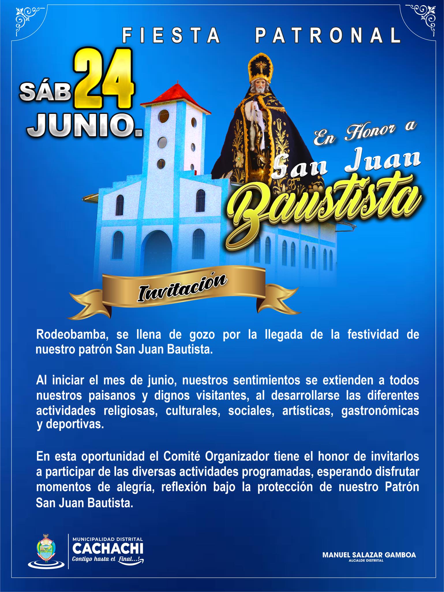 ESTE SÁBADO 24 DE JUNIO CELEBREMOS JUNTOS LA FIESTA PATRONAL EN HONOR A SAN JUAN BAUTISTA DEL CASERÍO DE RODEOBAMBA. Revisa el programa completo aquí 👇🏻👇🏻