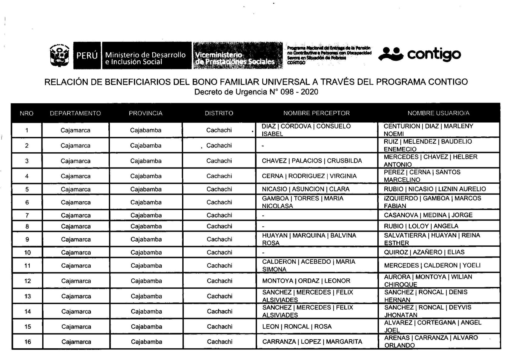 #Municipalidaddistritalcachachitext A LOS BENEFICIARIOS DE LAS SIGUIENTE LISTAS, PUEDEN COBRAR EL BONO CON SU TARJETA EN EL BANCO DE LA NACION