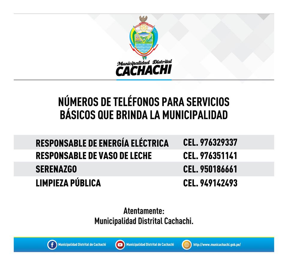 NÚMEROS DE TELÉFONOS PARA SERVICIOS BÁSICOS QUE BRINDA LA MUNICIPALIDAD